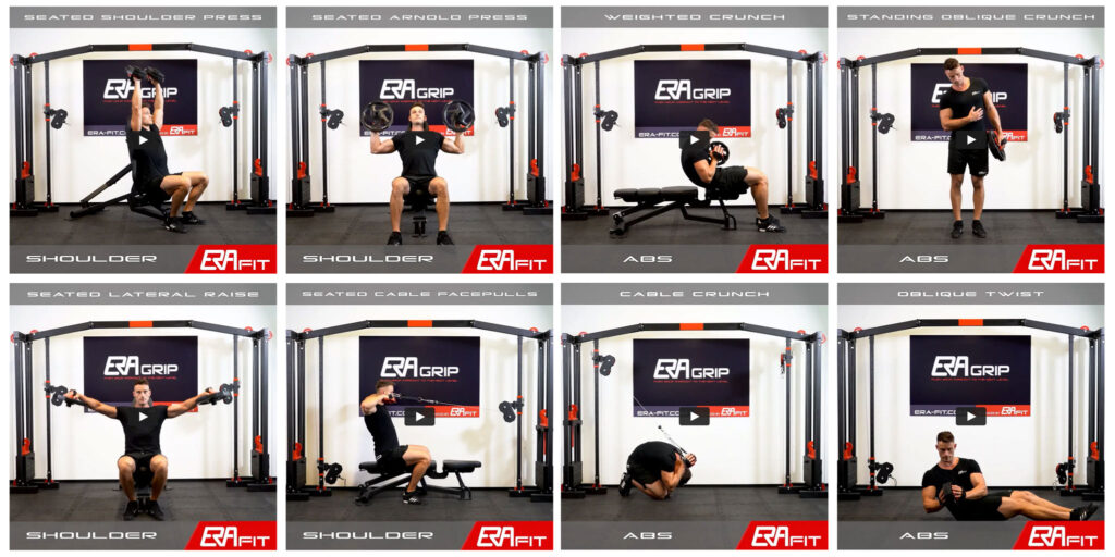Abhängig vom ERAgrip Set und welches Equipment Du im Gym oder zu Hause hast, kannst Du mehr als 200 verschiedene Übungen durchführen. Informationen zu den verschiedenen Übungsvarianten findest Du auf unserer Webseite www.era-fit.com