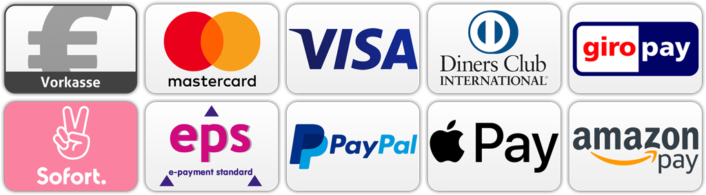 Wir bieten sehr viele sichere und bequeme Zahlungsarten an. Nähere Informationen HIER